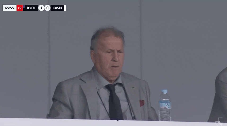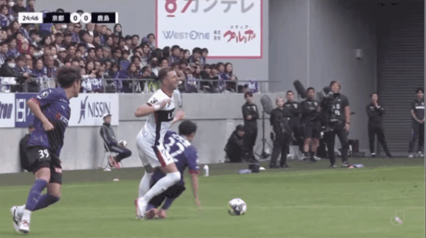 45+2’鹿岛暂0-1跟跑位京都,济科场边观赛神情凝重