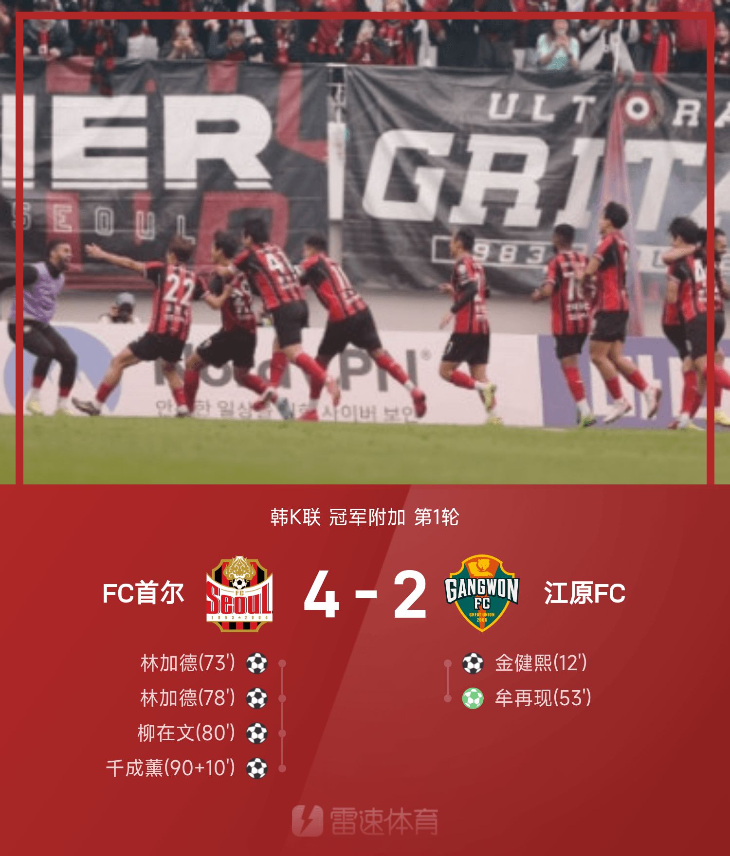 韩K联战报:林加德双响,柳在文逆转局球,首尔4-2逆转江原