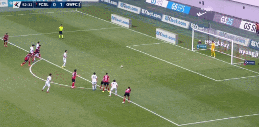 5’首尔自由球主罚到三秒区内,李胜模门前包抄慢了一步