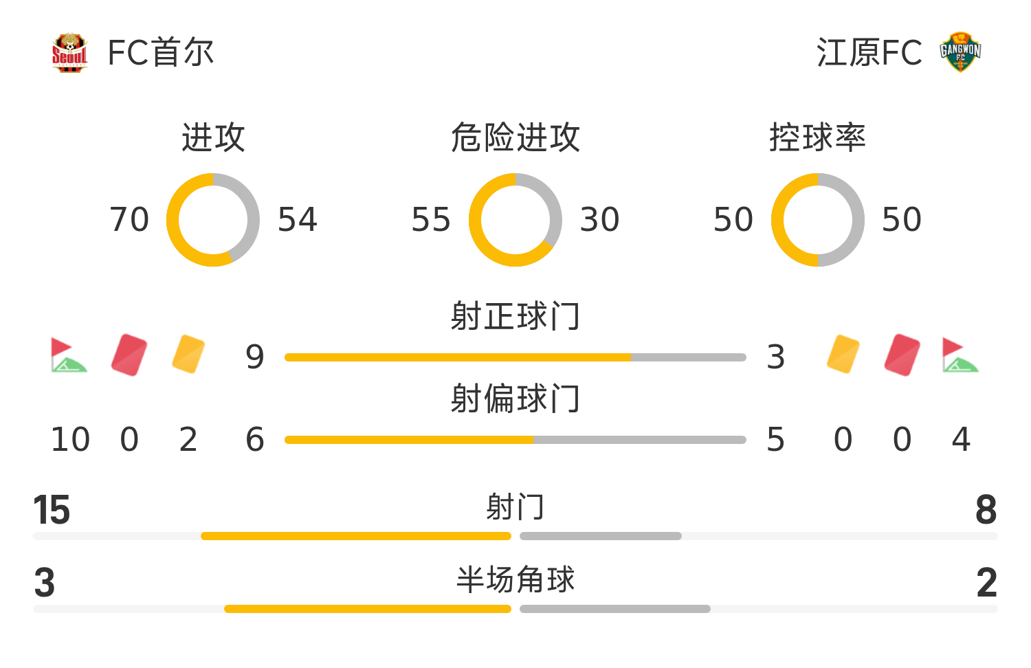 45+3’江原主罚自由球到三秒区内,李尚宪头没能形成威胁