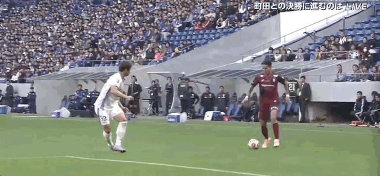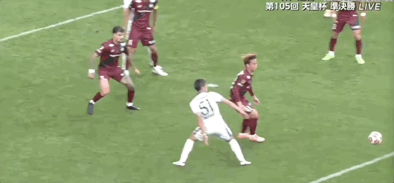 40’杰梅恩良三秒区前打门,神户守门员将球没收