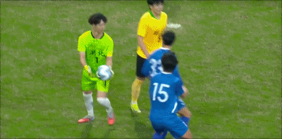 103’陈子文干扰守门员出球,被主裁判判出示警告牌
