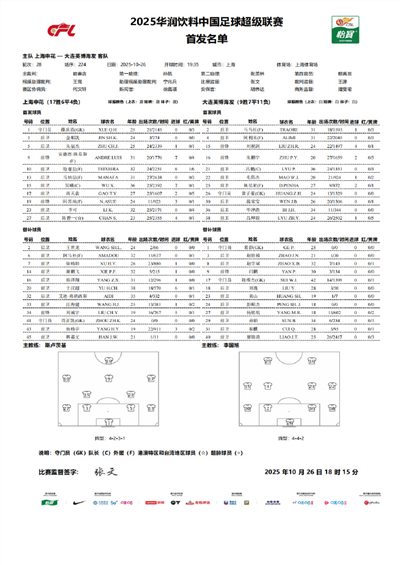 6686体育10月26日讯 北京时间今日,中超第28轮,上海申花主队场对阵大连英博,赛前双方公布首发。