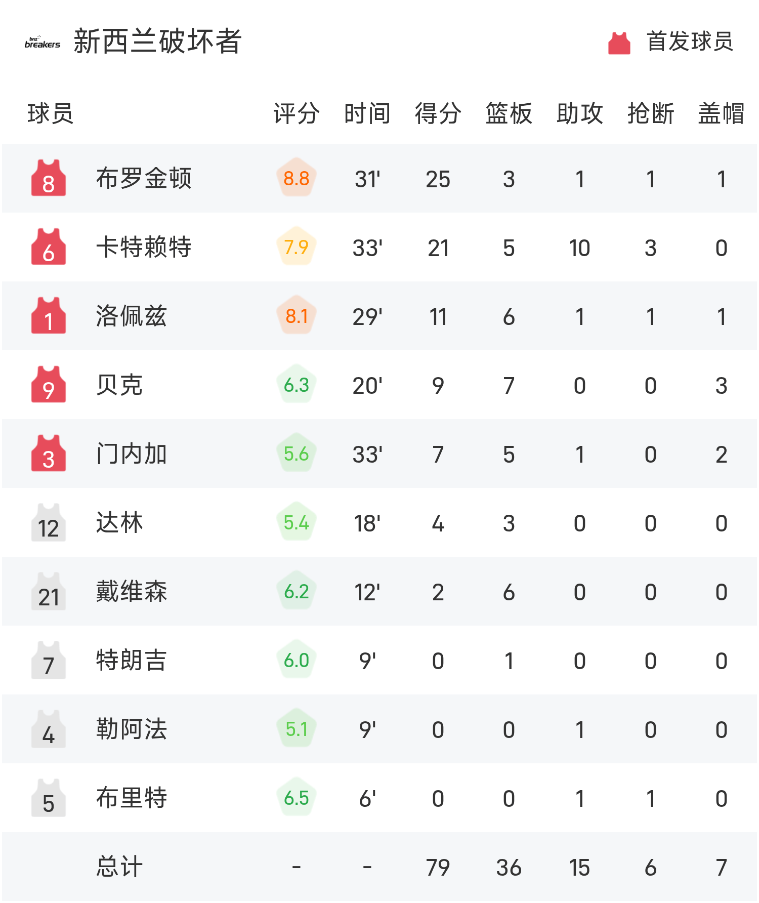 6686体育11月06日讯 25/26赛季NBL 常规赛,新西兰毁坏者对阵阿德莱德36人。双方全场战罢,新西兰毁坏者79-83不敌阿德莱德36人。科顿得到23分1板5助率队取胜,布罗金顿空砍全场最高的25分3板1助。