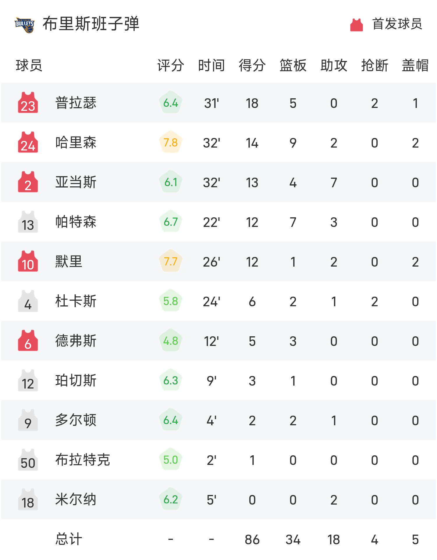 球员数据 查看更多