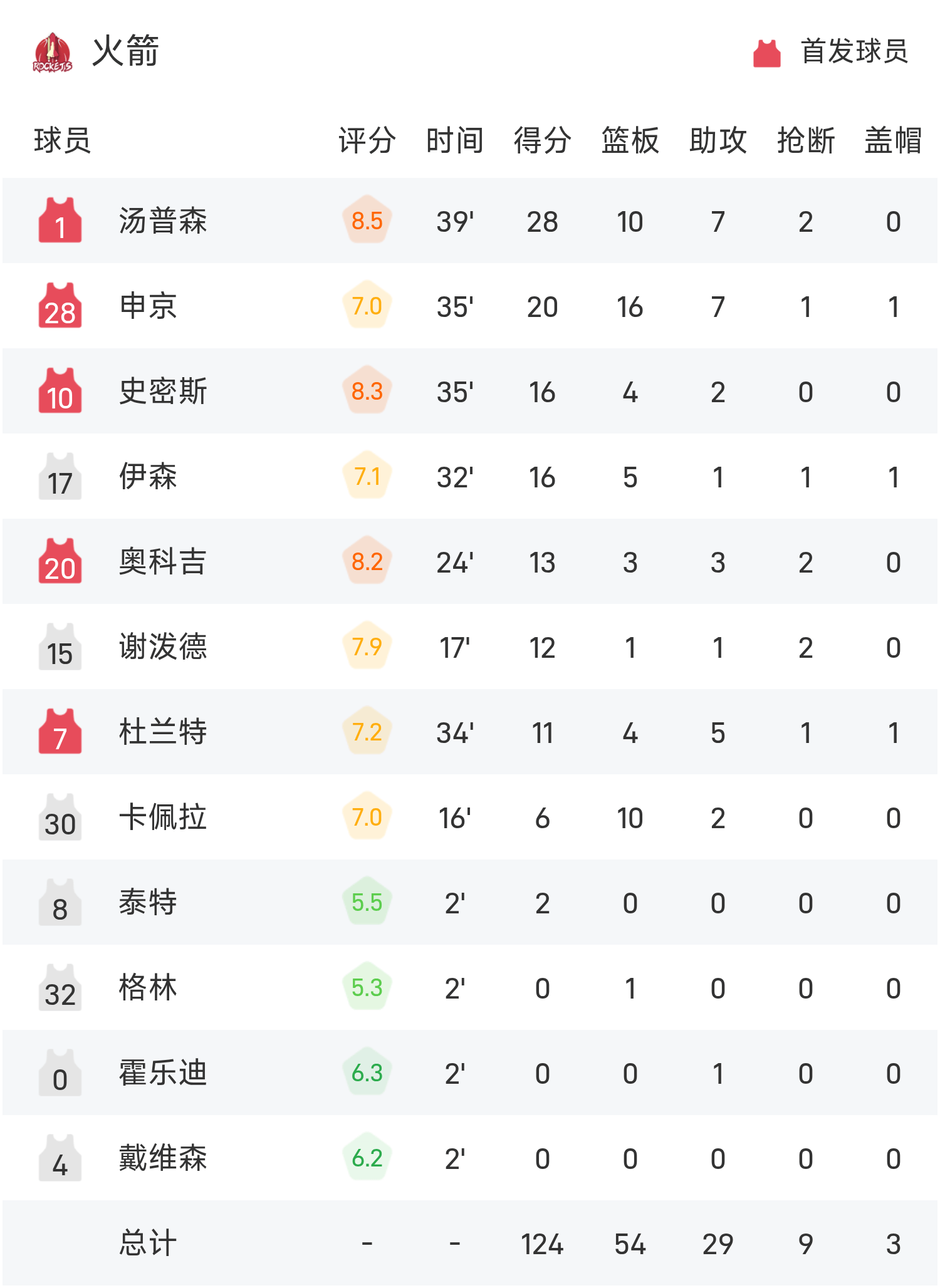 NBA战报:阿门28分10板7助,火箭124-109轻取灰熊