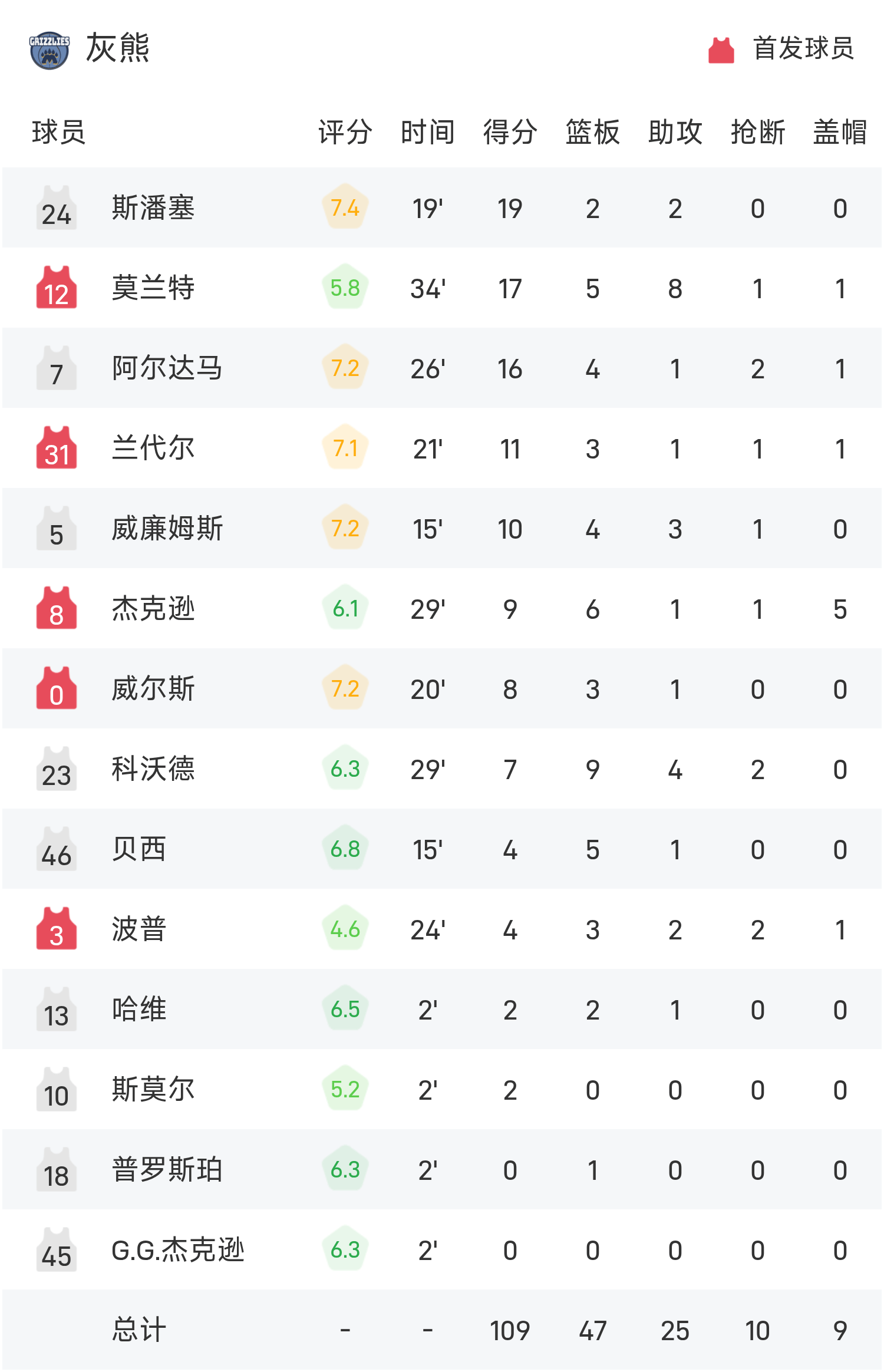 球员数据 查看更多