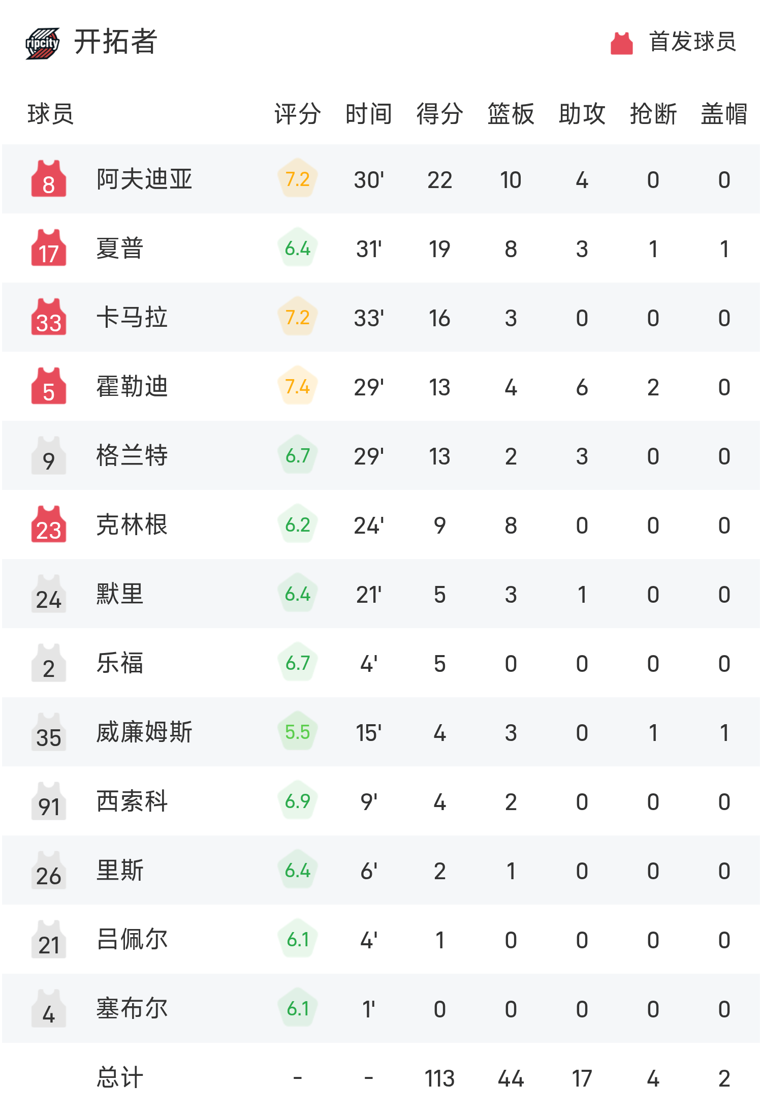 球员数据 查看更多