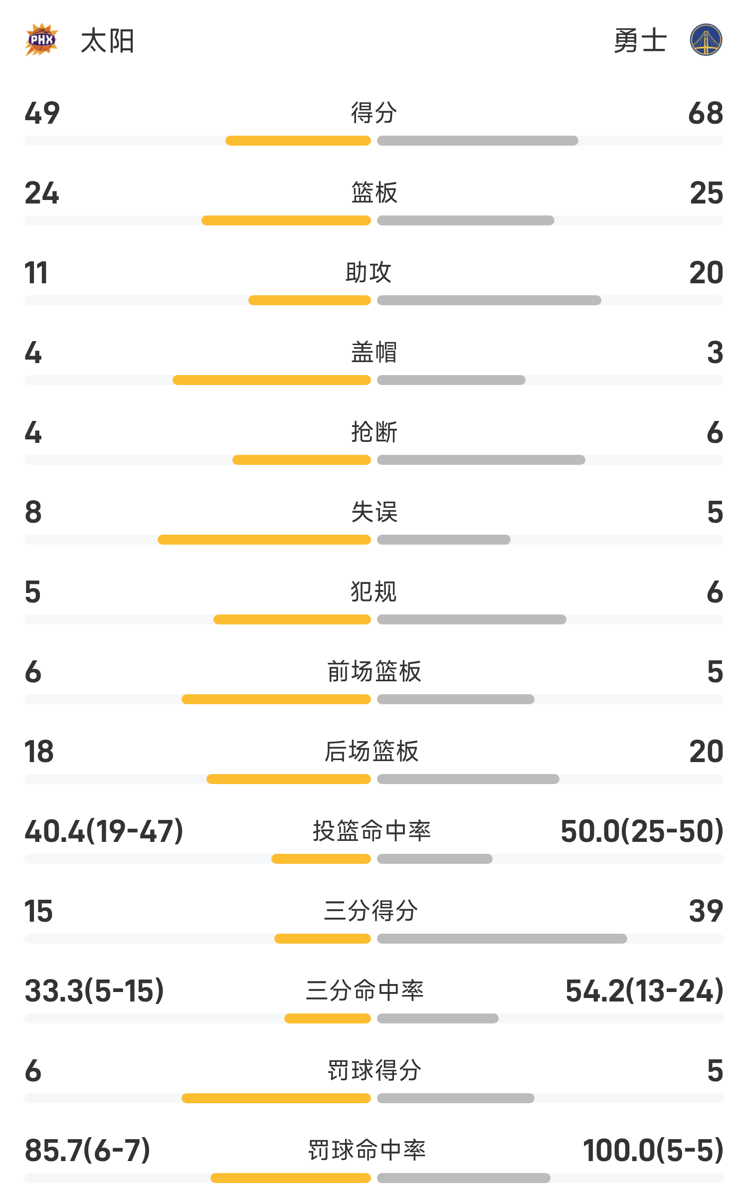 NBA半场:穆迪13分,勇士10分得分,勇士68-49大赛果分领跑位太阳