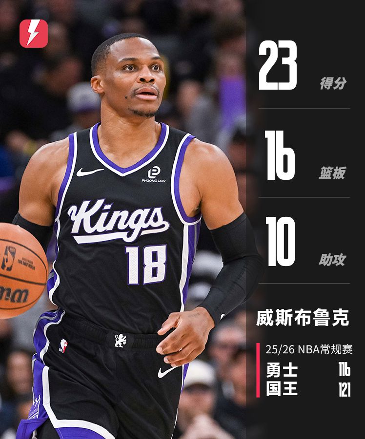 本场竞赛,威少打出了赛季最佳表现,全场13投9中,三分球球4投3中,打出了23分16抢篮板10助攻的三双表现,这也是他生涯第204次三双。
