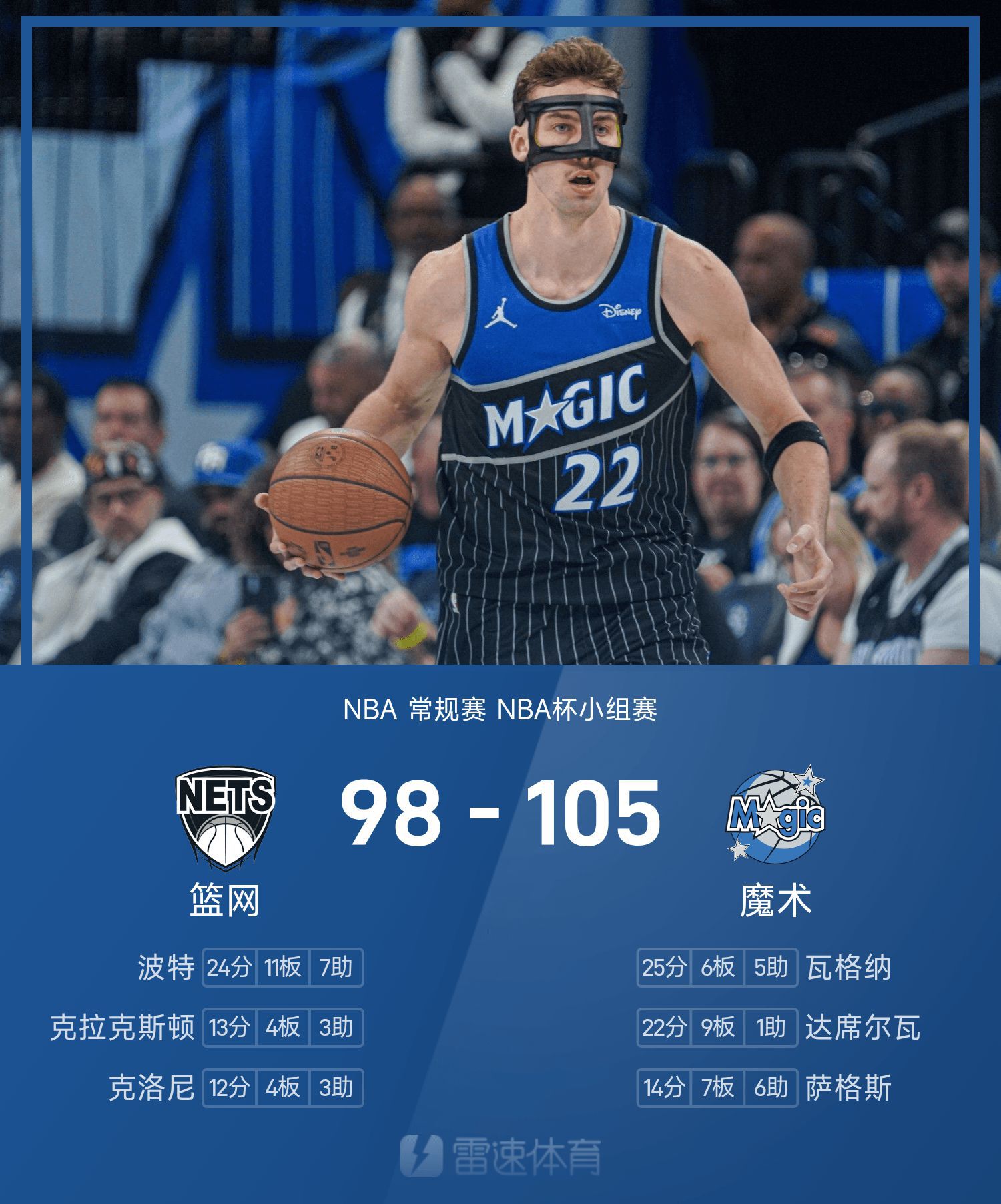 篮网98-105魔术