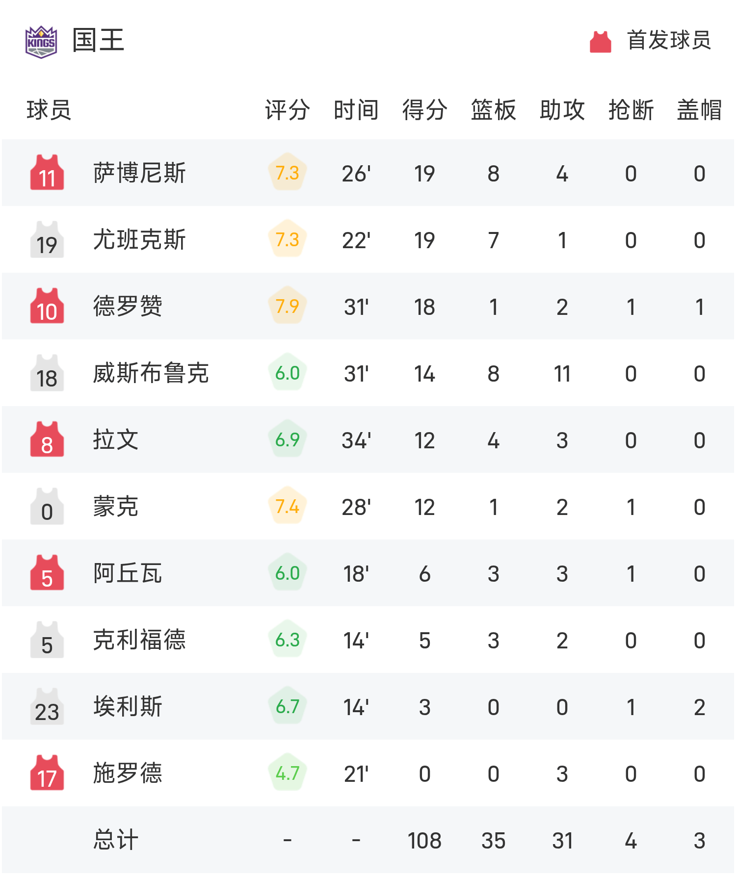 双方全场战罢,国王108-122不敌掘金。