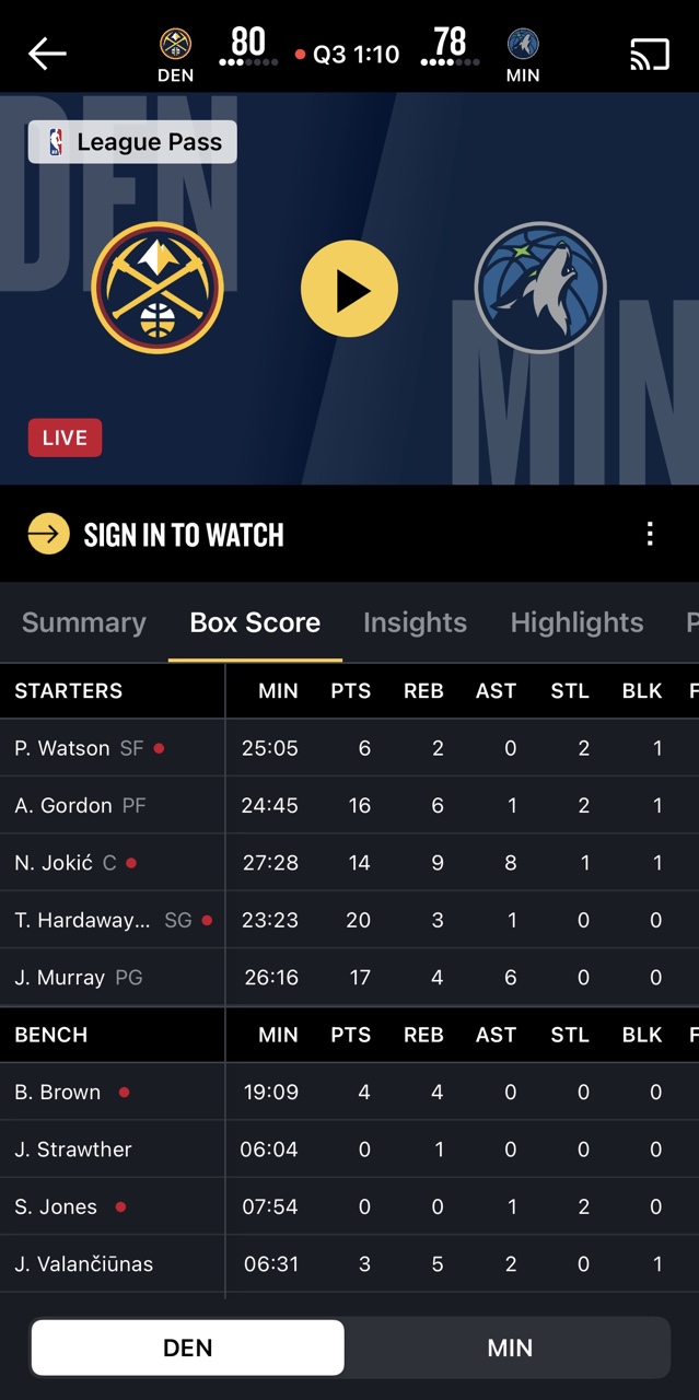 掘金强势击败森林狼取得7连胜,NBA官网数据仍在修补中