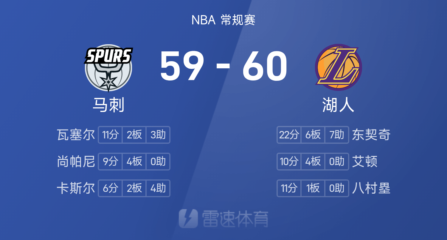 NBA半场:东契奇22分6板7助,湖人60-59马刺