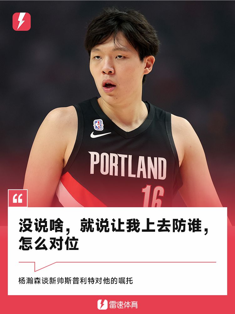 杨瀚森回应表示:没说啥,就说让我上去防谁,怎么对位。 ”