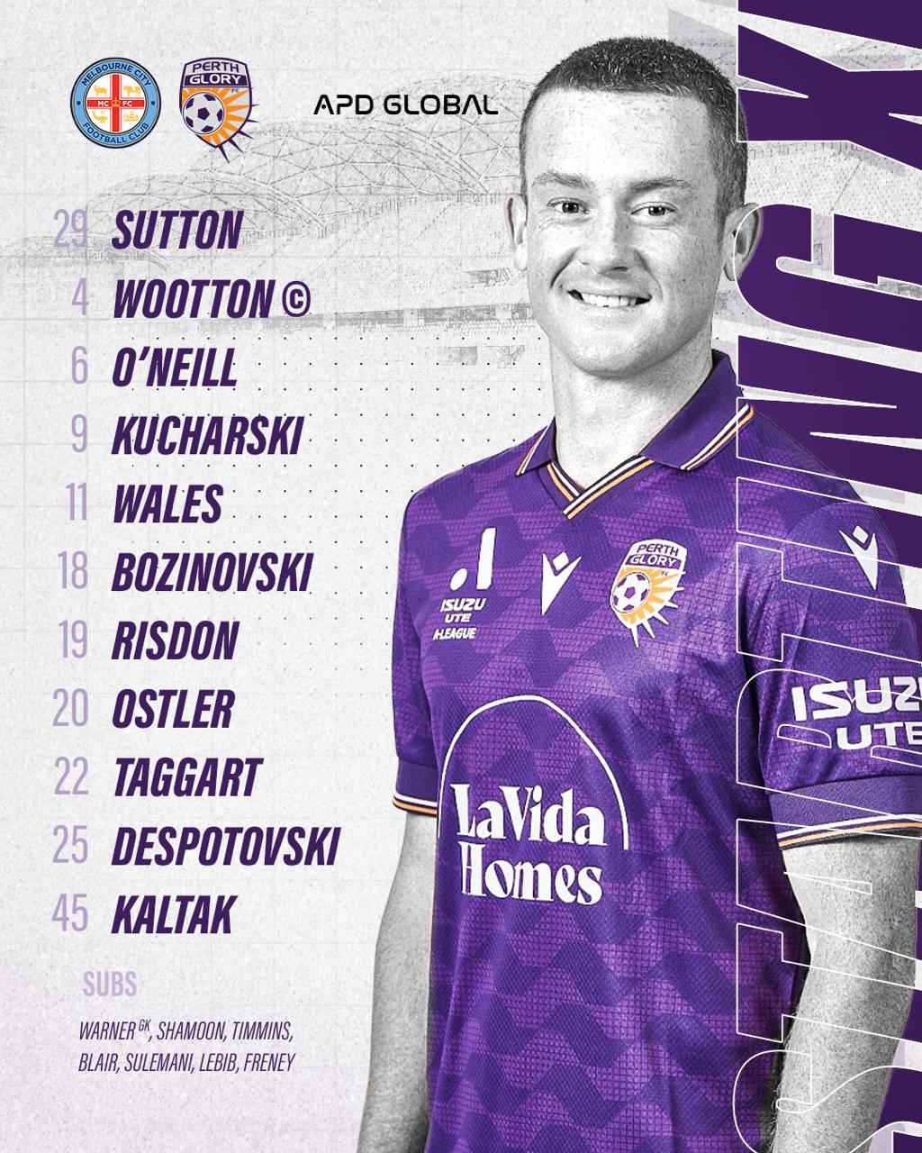 墨尔本城vs珀斯光荣首发:莱基PK塔加特、库查尔斯基、比奇在列