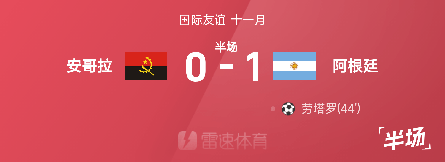 44’梅西送助攻,劳塔罗大力抽射破门,阿根廷暂1-0领跑位安哥拉