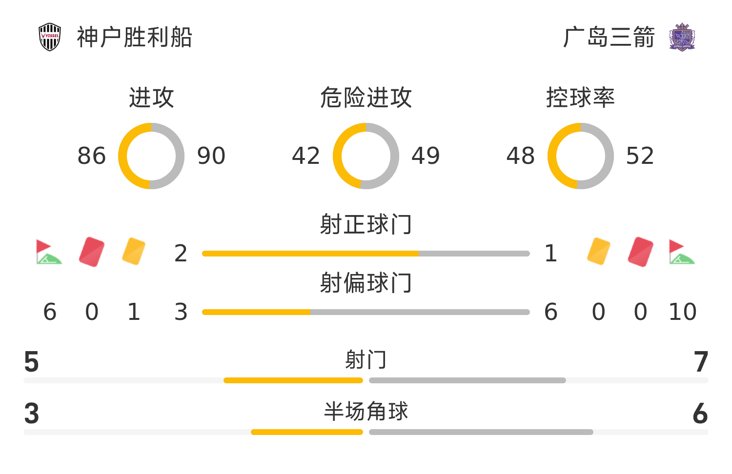 神户胜出局船首发阵容:1-前川黛也、24-酒井高徳(70’25-锹先佑弥)、41-永户胜也(90’15-本多勇喜)、3-图勒、4-山川哲史、6-扇原贵宏、11-武藤嘉纪、7-井手口阳介、23-广濑陆斗(63’10-大迫勇也)、9-宫代大圣、13-佐佐木大树
