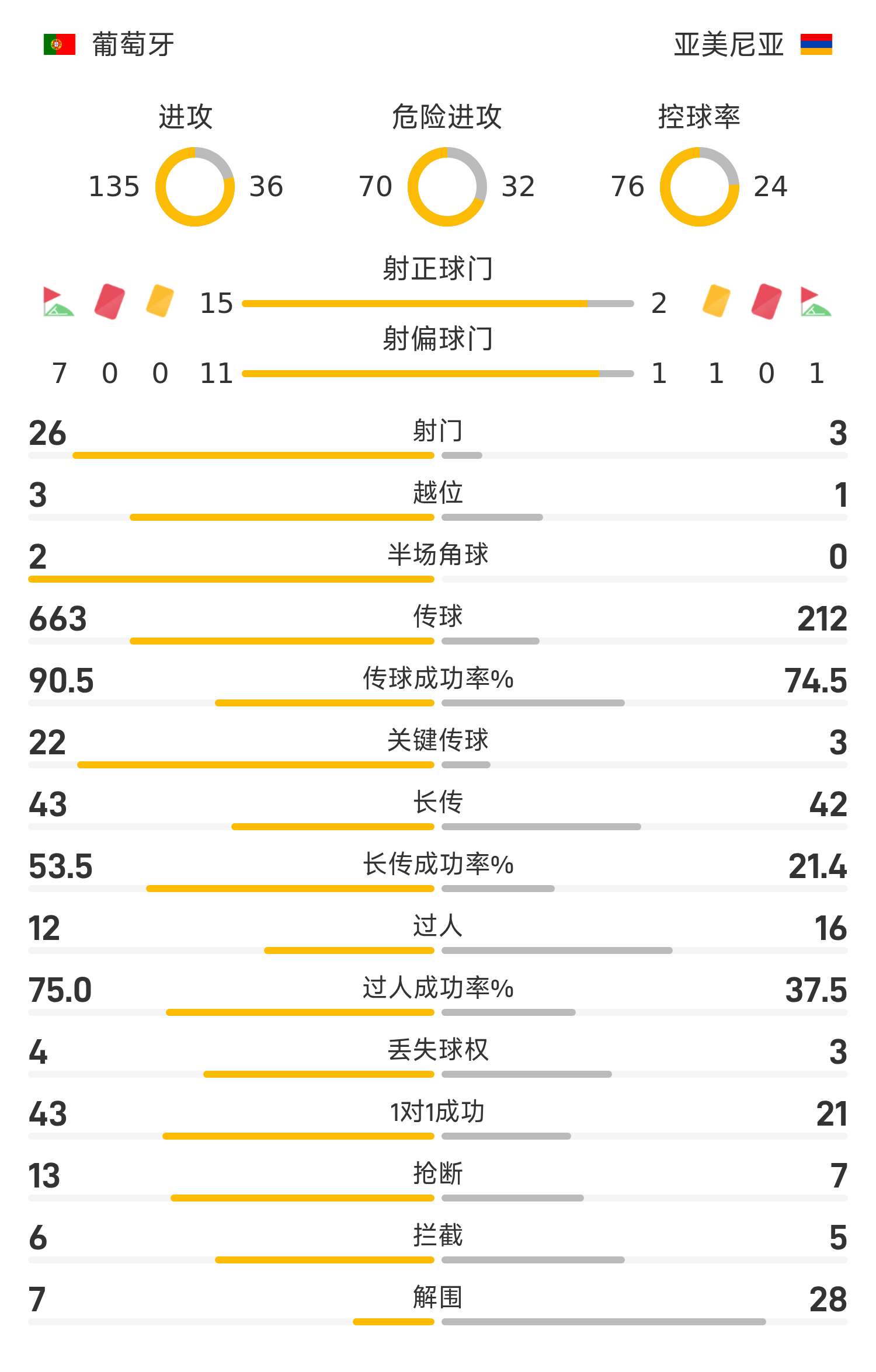 亚美尼亚首发阵容:16-阿瓦杨、21-提克尼兹扬、3-皮罗扬(55’4-哈鲁图尼扬)、5-姆克里奇扬、2- 穆拉江、13-霍夫汉尼斯扬、20-穆拉迪安(82’23-班迪基扬)、18-阿格哈萨里亚(46’7-塞维克扬)、8-斯珀特森、9-塞罗布杨(46’10-沙格霍扬)、17-拉诺斯(65’15-埃洛扬)