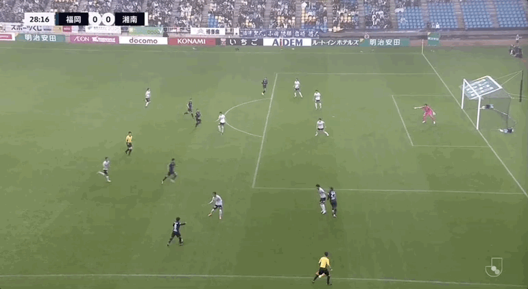 90+3’ 湘南守门员拳击送点,见木友哉主罚命中,福冈1-0湘南