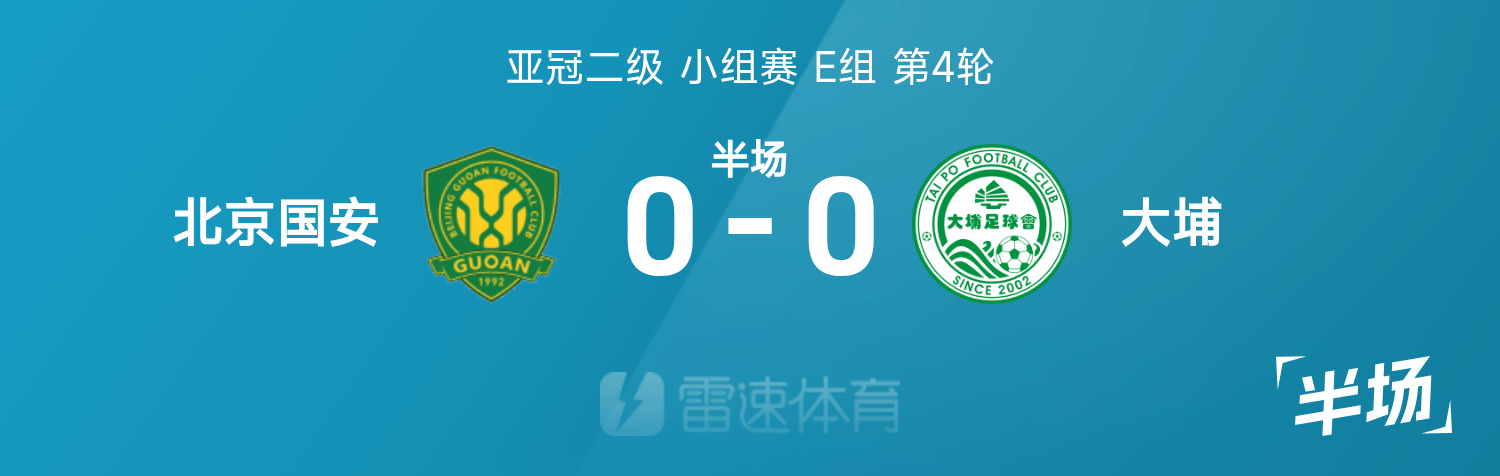 亚冠二级半场:王刚造险、张健智险送礼,国安暂0-0大埔